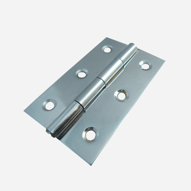 - Custom chrome-coated Broad Butt Hinge for steel cabinets.